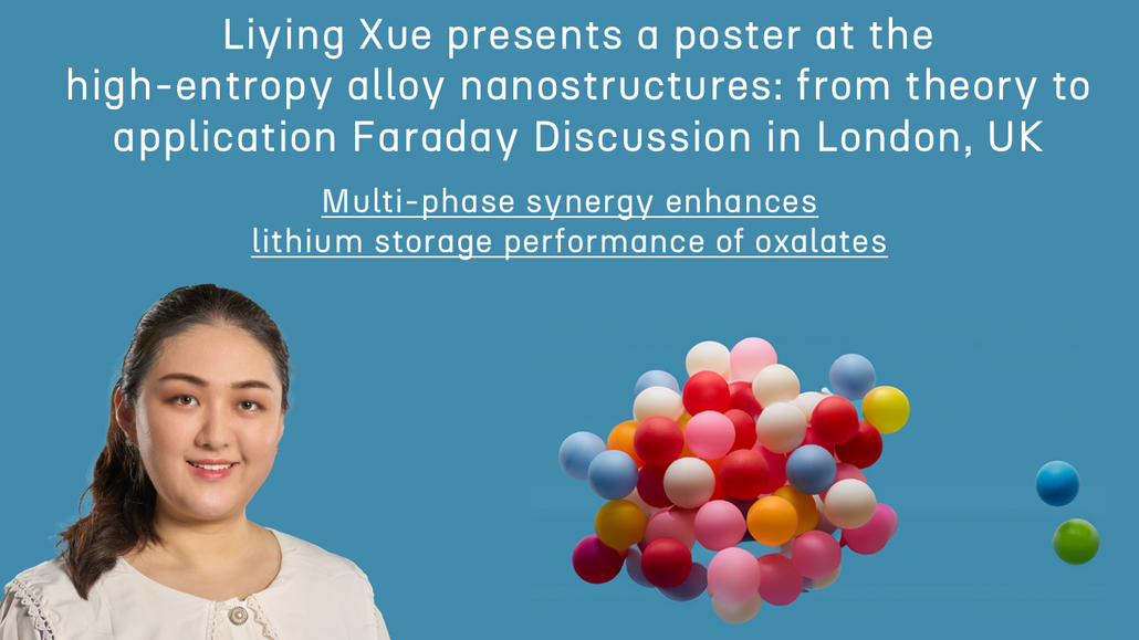 Liying Xue presents a poster on our work on multi-component composition materials at the at the Faraday Discussion on “High-entropy alloy nanostructures: from theory to application” by the Royal Society of Chemistry (RSC) in London (UK). Thanks to our external collaborators Chaochao Dun and Oliver Janka!